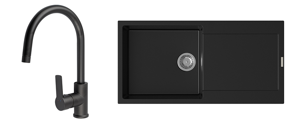 StrongSinks S3 Set drez Zala 1000 1000x500mm granit čierny + Baterie Loira čiern