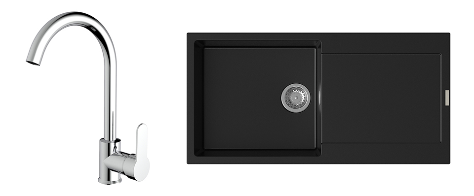 StrongSinks S3 Set drez Zala 1000 1000x500mm granit čierny + Baterie Seina chrom