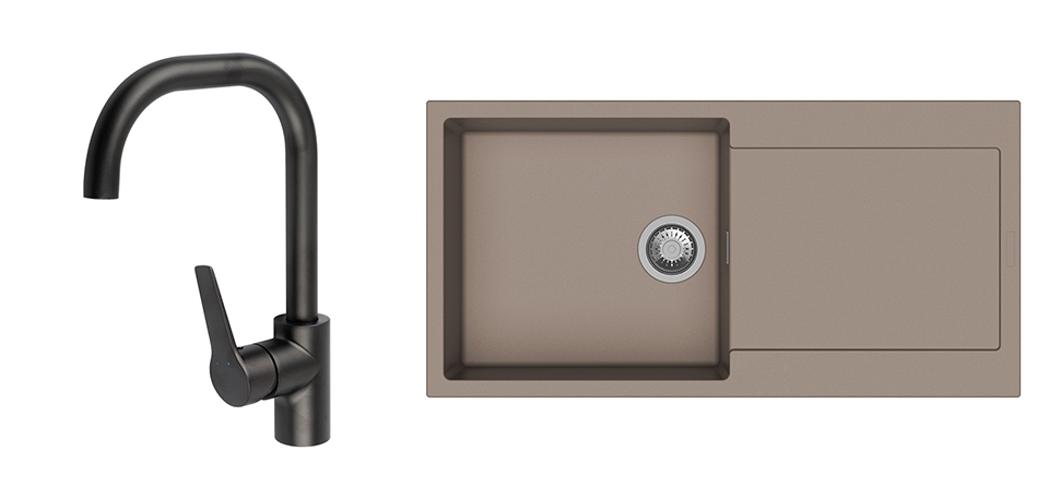 StrongSinks S3 Set drez Zala 1000 1000x500mm granit hnedý + Batér. Garonne čiern