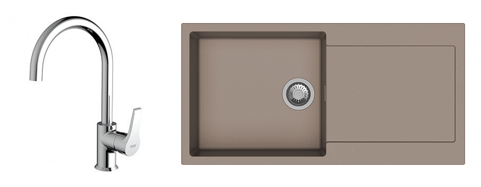 StrongSinks S3 Set drez Zala 1000 1000x500mm granit hnedý + Baterie Rhona chrom