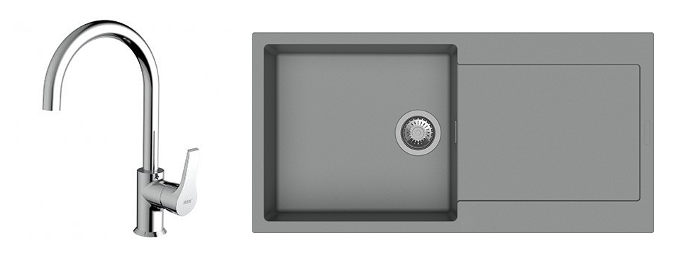 StrongSinks S3 Set drez Zala 1000 1000x500mm granit šedý + Baterie Rhona chrom
