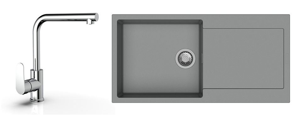 StrongSinks S3 Set drez Zala 1000 1000x500mm granit šedý + Baterie Stréva chr.