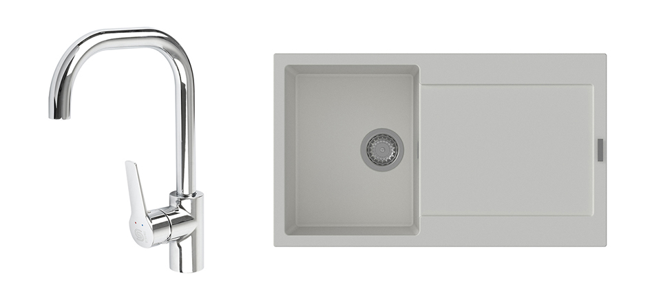 StrongSinks S3 Set drez Zala 860 860x500mm granit biely + Baterie Garonne chrom