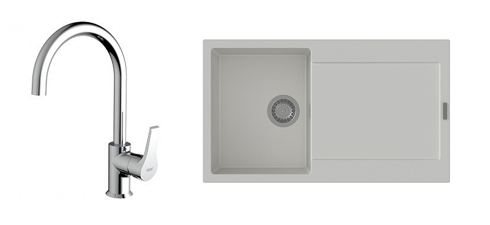StrongSinks S3 Set drez Zala 860 860x500mm granit biely + Baterie Rhona chrom