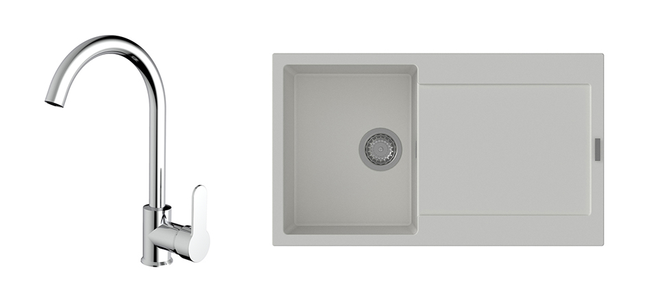 StrongSinks S3 Set drez Zala 860 860x500mm granit biely + Baterie Seina chrom