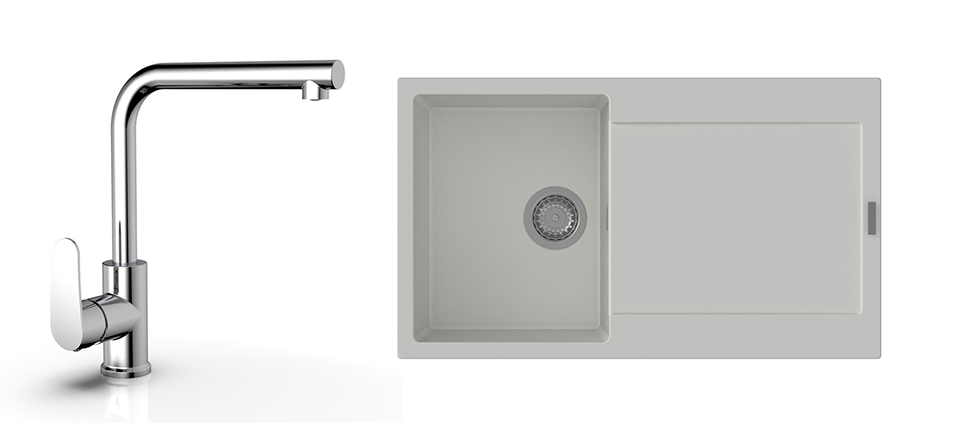 StrongSinks S3 Set drez Zala 860 860x500mm granit biely + Baterie Stréva chrom