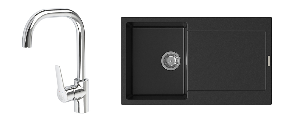 StrongSinks S3 Set drez Zala 860 860x500mm granit čierny + Baterie Garonne chrom