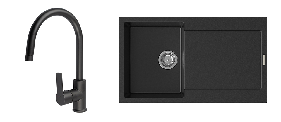StrongSinks S3 Set drez Zala 860 860x500mm granit čierny + Baterie Loira čierna