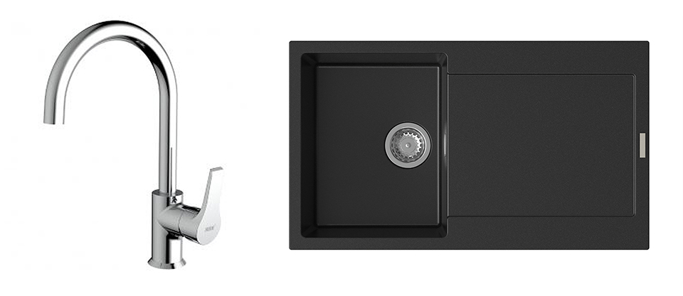 StrongSinks S3 Set drez Zala 860 860x500mm granit čierny + Baterie Rhona chrom