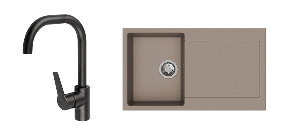 StrongSinks S3 Set drez Zala 860 860x500mm granit hnedý + Batéria Garonne čierna