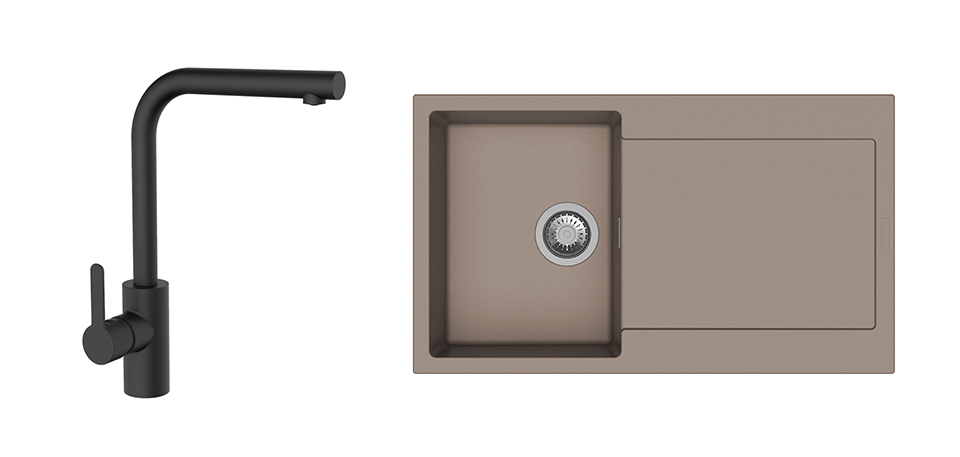 StrongSinks S3 Set drez Zala 860 860x500mm granit hnedý + Batéria Ipoly čierna