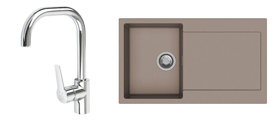 StrongSinks S3 Set drez Zala 860 860x500mm granit hnedý + Baterie Garonne chrom