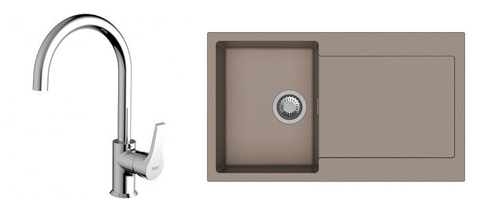 StrongSinks S3 Set drez Zala 860 860x500mm granit hnedý + Baterie Rhona chrom