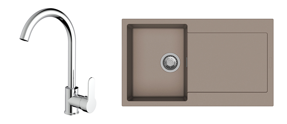 StrongSinks S3 Set drez Zala 860 860x500mm granit hnedý + Baterie Seina chrom