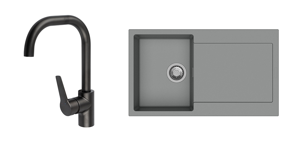 StrongSinks S3 Set drez Zala 860 860x500mm granit šedý + Batéria Garonne čierna