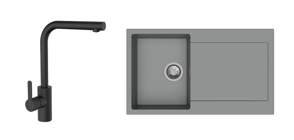 StrongSinks S3 Set drez Zala 860 860x500mm granit šedý + Batéria Ipoly čierna