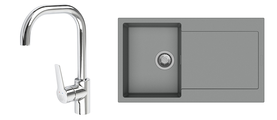 StrongSinks S3 Set drez Zala 860 860x500mm granit šedý + Baterie Garonne chrom