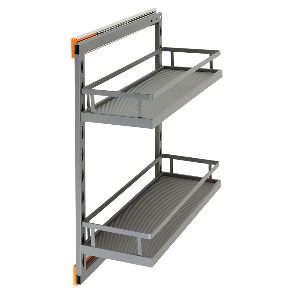 Drôtený kôš s dvomi policami pre skriňku 200mm. Rozmery: výška 566 mm, hĺbka 485 mm, šírka 155 mm