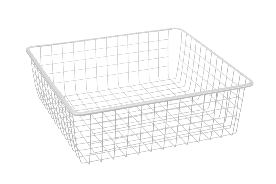Šatníkový kôš pre korpus 800mm. Nosnosť koša 20 kg. Možno dokúpiť výsuvy: 351098 - Výsuv plastový FLEX pre 16mm korpus - biely alebo - 351101 - Výsuv plastový FLEX pre 18mm korpus - biely