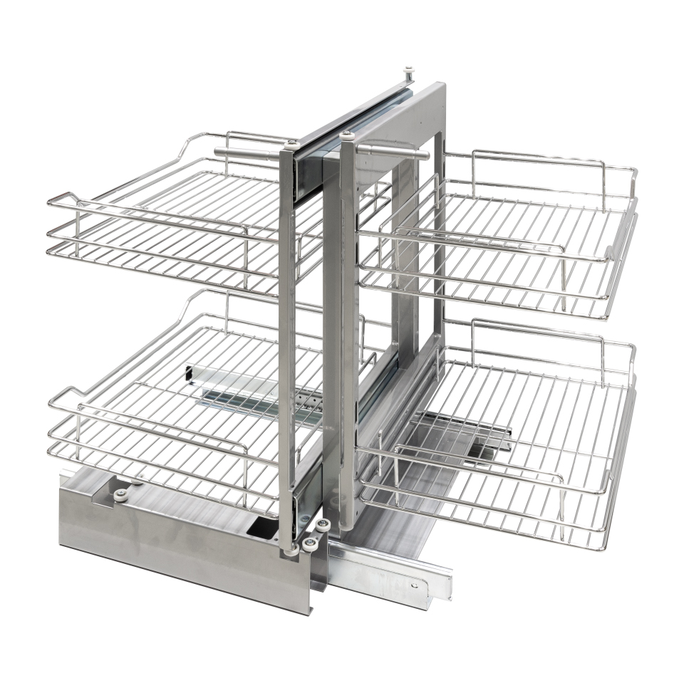 Univerzálny (pravý/ľavý) mechanizmus na riešenie spodného rohu, pre vonkajší rozmer korpusu 900–1000mm. S možnosťou vysunutia zadných košov pred korpus. Rozmery: šírka 762mm, hĺbka 540mm, výška 610mm. Minimálna šírka čela 450mm. Bez tlmenia pri zatváraní. Minimálna vnútorná hĺbka je 521mm Nosnosť jednotlivých políc = 5 kg