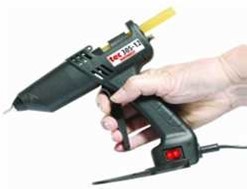Průmyslová tavná pistole na tavné tyčinky s průměrem 12 mm, s příkonem 150 W, napájení z eletkrické sítě (230 V), tavná teplota 195 stupňů, lehká (250 g) a snadno ovladatelná, s osvětleným vypínačem na rukojeti, s odnímatelým plastovým stojánkem, nastavitelným chodem spouštěcí páky a výměnnou tryskou. Pistole je dována v plastovém blistru.