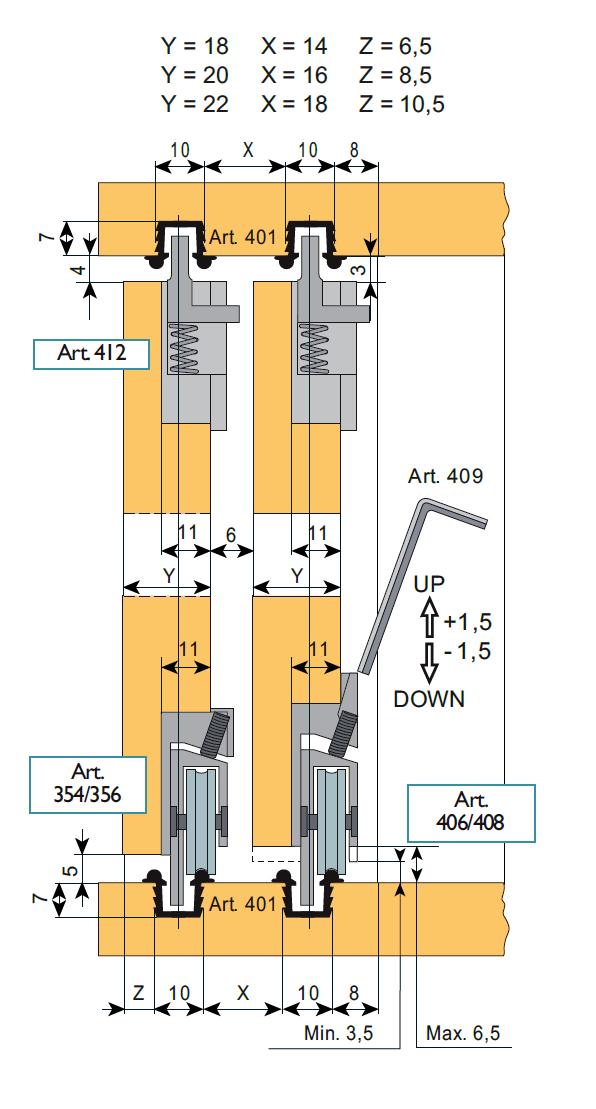 TERNO horné/spodné vedenie k zafrézovaniu 401/A 1,2m strieborná elox