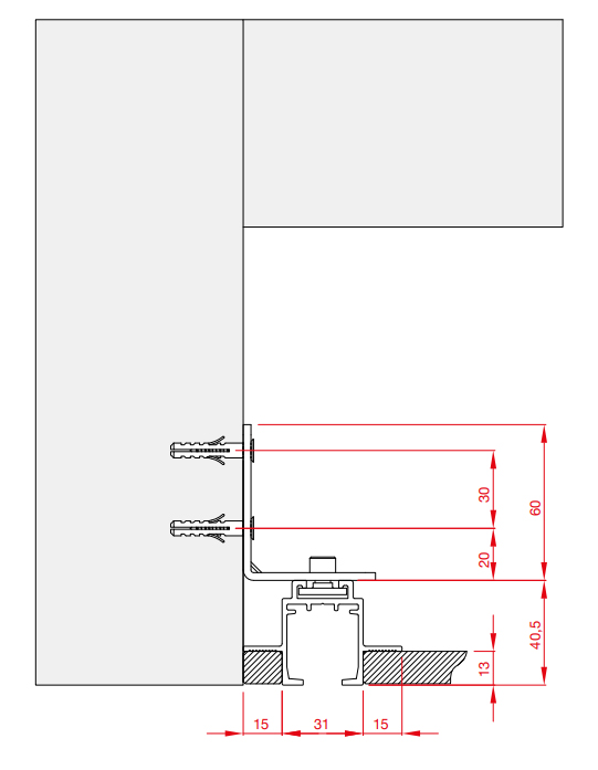 Držiak pre hornú líniu do bočnej steny nad sadrokartón.