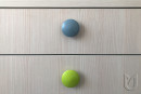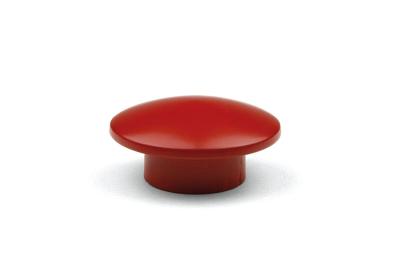 Knopka priemer: 31,5 mm/57 mm, výška: 27,5 mm, povrch: červená, použité ekologické laky s atestom