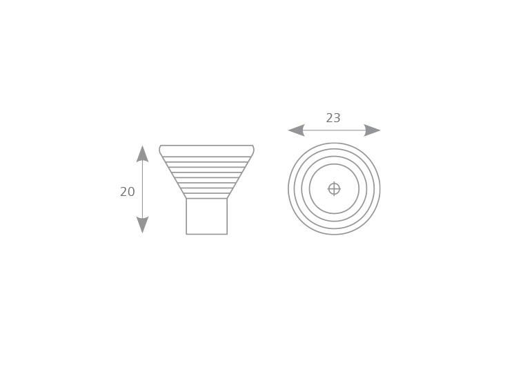 kovový knop v povrchovej úprave lesklý chróm, priemer 23 mm, výška 20 mm.