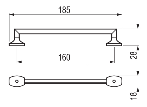 Uchwyt metalowy, rozstaw 160mm, o łącznej długości 185mm.