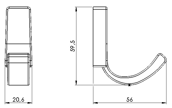 Kovový věšák s přední montáží Rozteč:20mm Šířka: 20,5mm Výška: 59mm