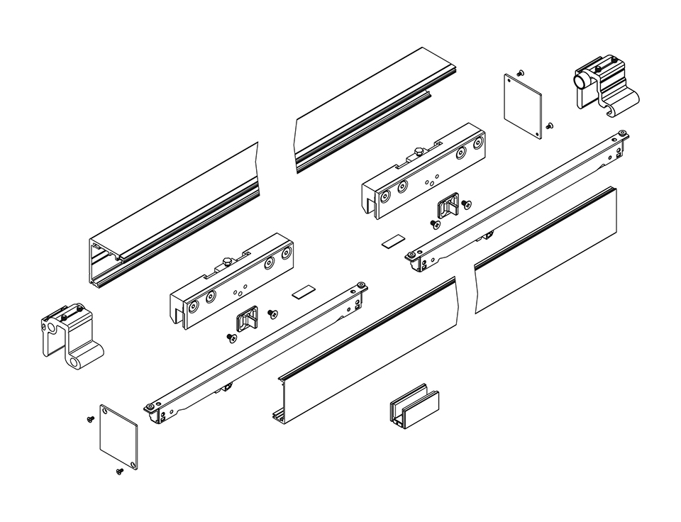 Sada kovania pre jedny dvere vrátane horného vedenia a krycej lišty. Verzia s tlmením. Povrchová úprava - čierny mat.