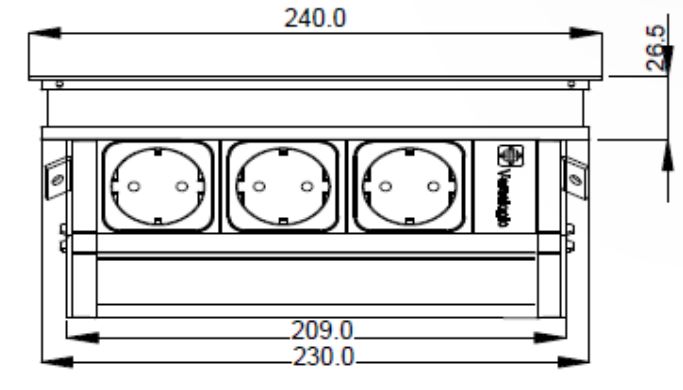 Kompletný kancelársky systém s 3 el. Zásuvkami, vrátane hliníkovej priechodky 240x120 mm a uchytenia, ktorý sa obvykle umiestňuje do pracovnej plochy stolu.