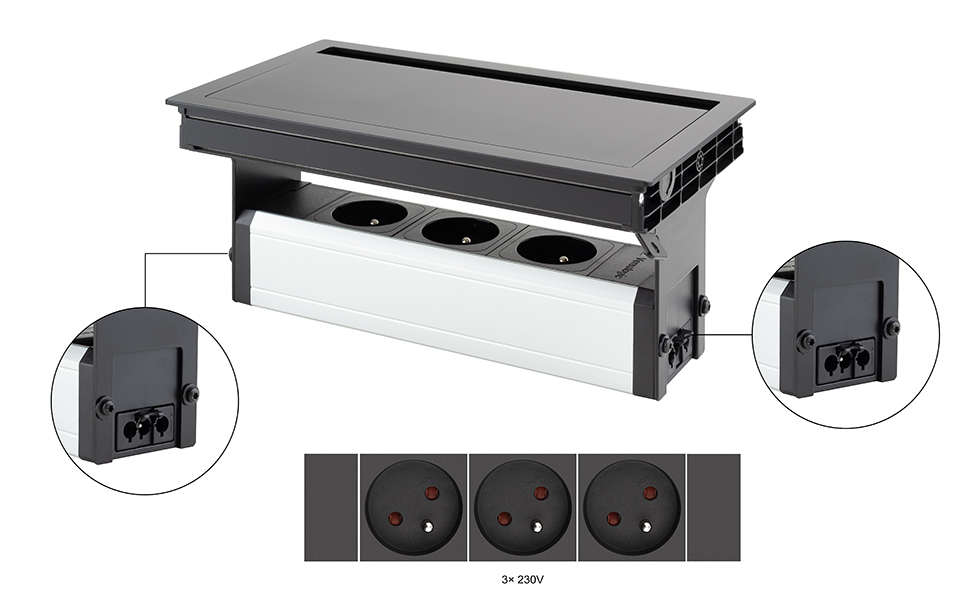 VersaFlap Mono 2.0 elektrická zásuvka 3x 230V, Fr, černá matná - pouze rozbaleno