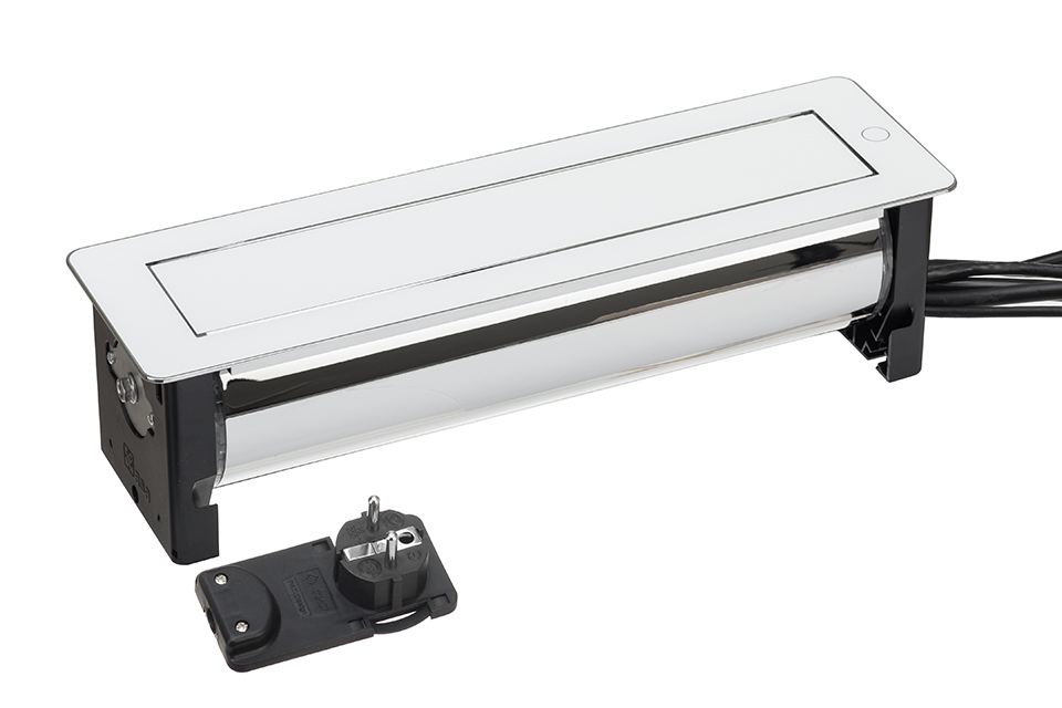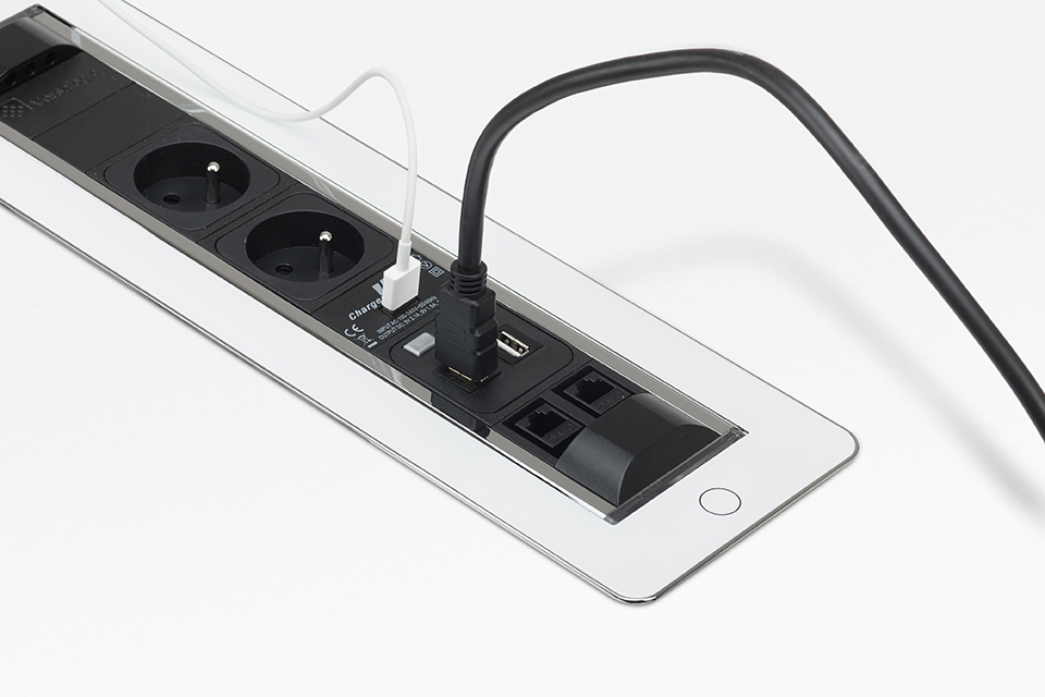 Versaturn je elektronicky riadená moderná dizajnová zásuvka určená pre zabudovanie do stolov v kanceláriách, zasadacích miestnostiach alebo hoteloch.