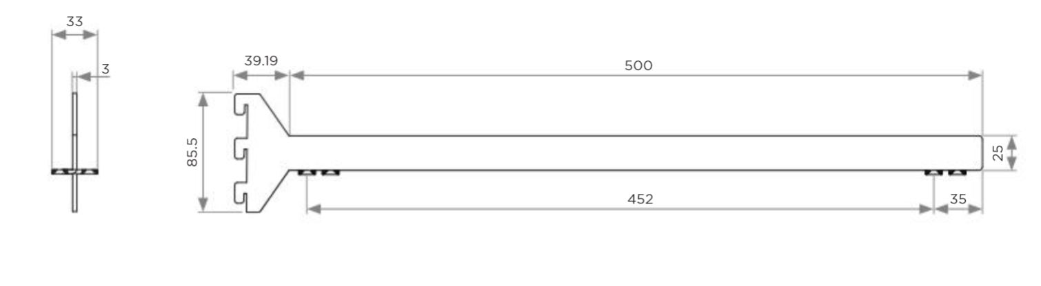 VERTIKO držiak police stredový, tmavo hnedá, 500mm, spodná montáž