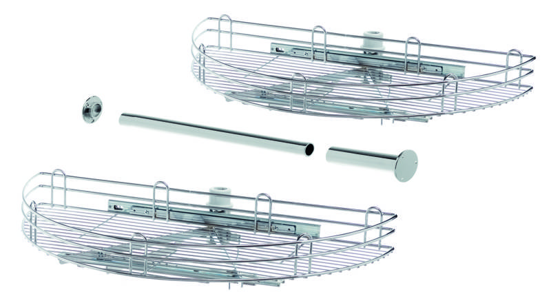 šírka: 760 mm. Výška: 70 mm. Vonkajší rozmer skrinky: 900 mm. Použiteľné pre vnútornú výšku skrinky : 645 - 790mm. Pre vnútornú hĺbku 450 mm. Pravo-ľavá varianta. Sada obsahuje: 2 x karusel, 1 x otočná tyč, aretačné krúžky. Otočné koše upevnené na tyči je možné po otočení vysunúť.