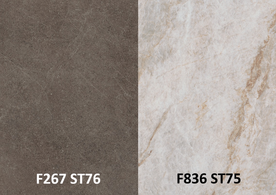 Zásteny sú drevotrieskové dosky obojstranne potiahnuté laminátom. Z každej strany majú iný dekor.