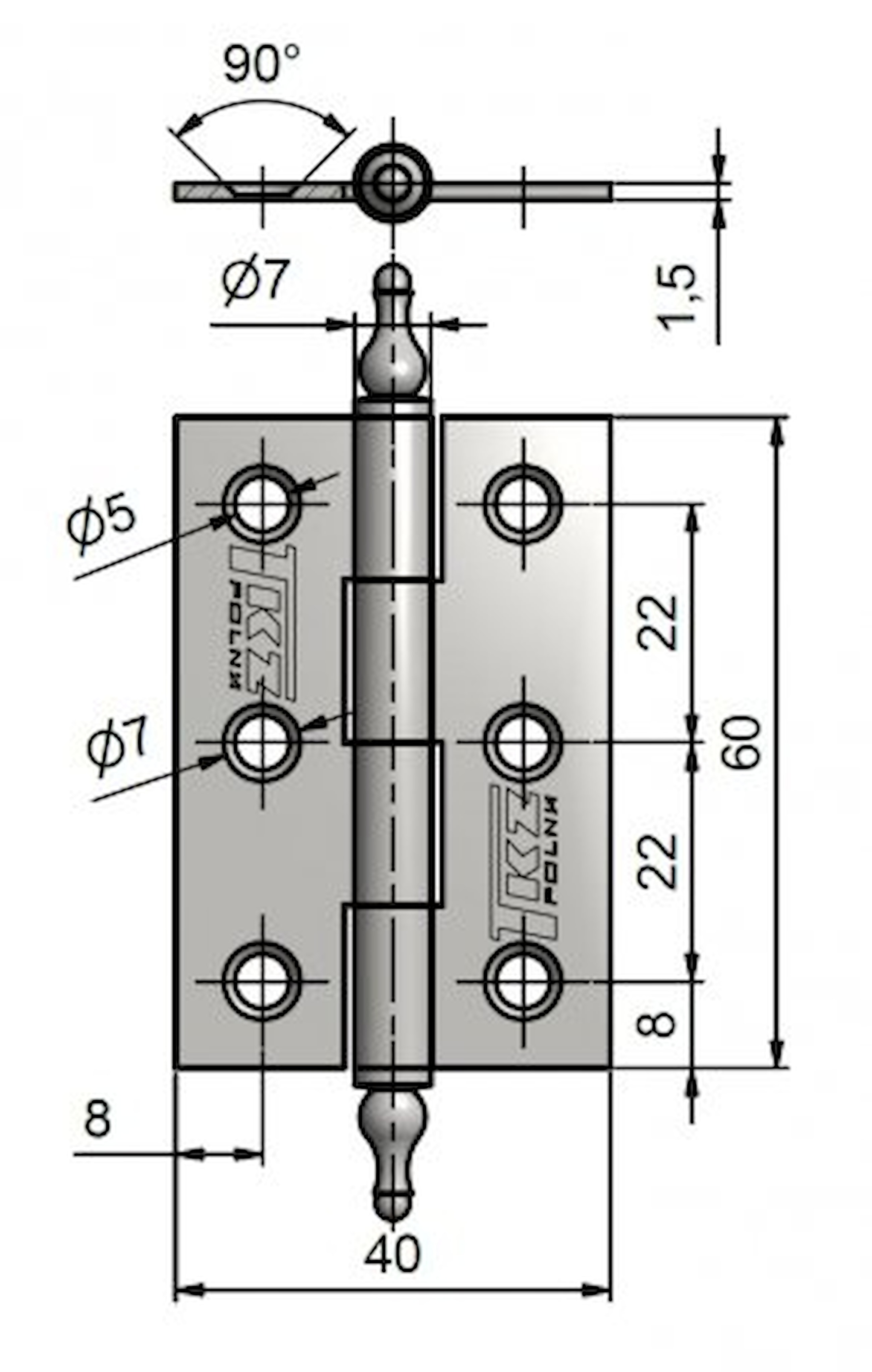 Záves krídlový UR 60,60x40x7mm.skrutka,povrchová úprava mosaz