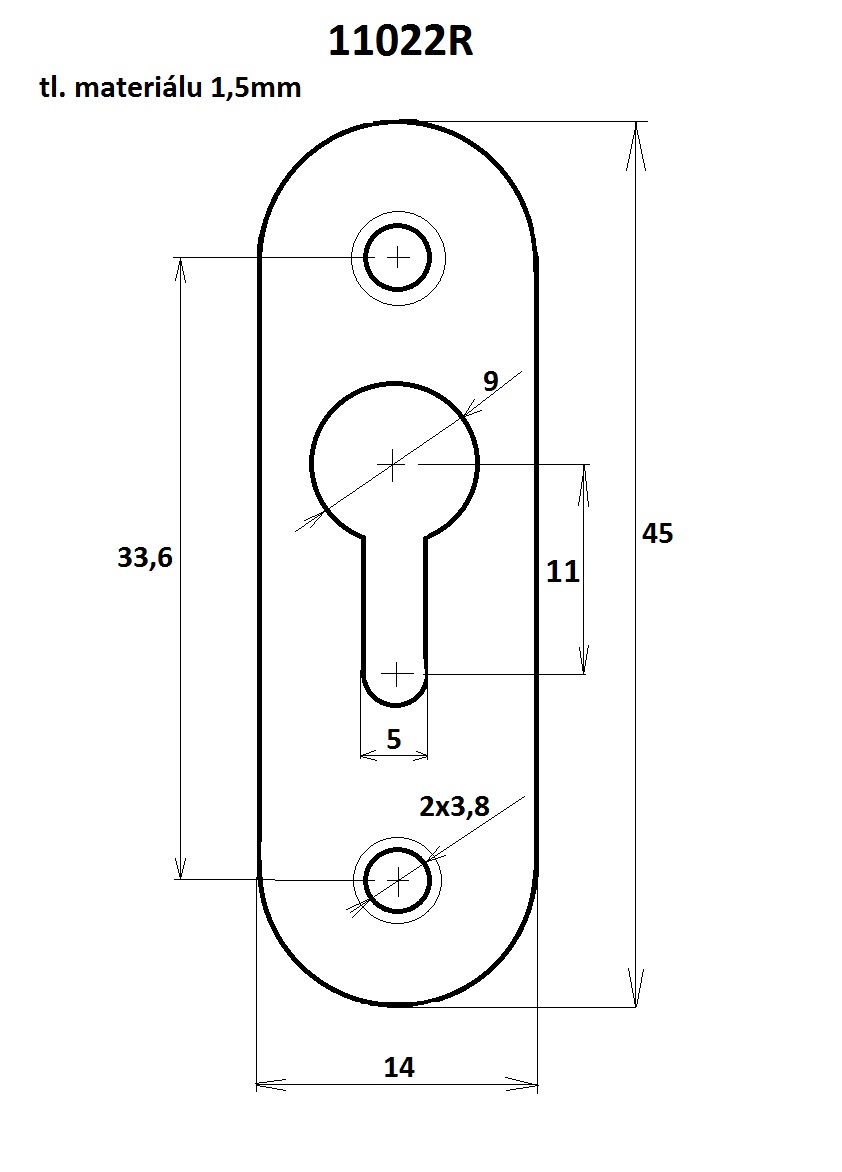 Šírka: 15,5mm Dĺžka 45mm Povrchová úprava pozinok, Hrúbka materiálu 1,5 mm